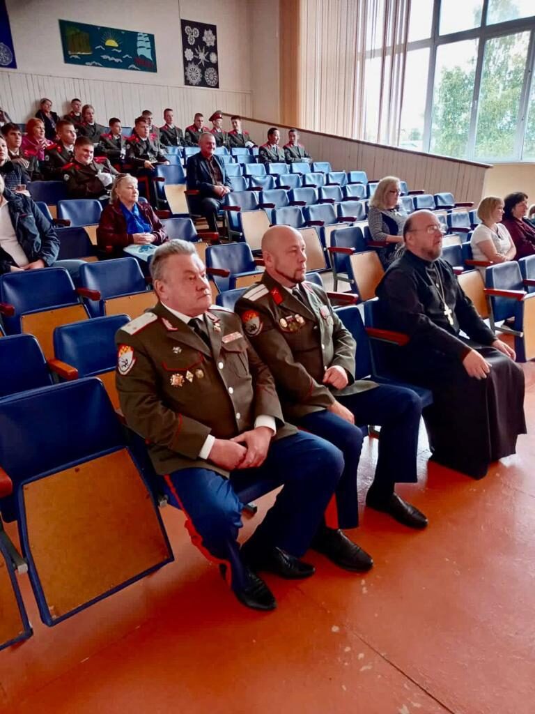 Перед учащимися с напутственными словами и поздравлениями, выступили руководитель епархиального отдела по взаимодействию с казачеством иерей Олег Ануфриев и атаман ЕВКО Артамонов Павел Петрович.